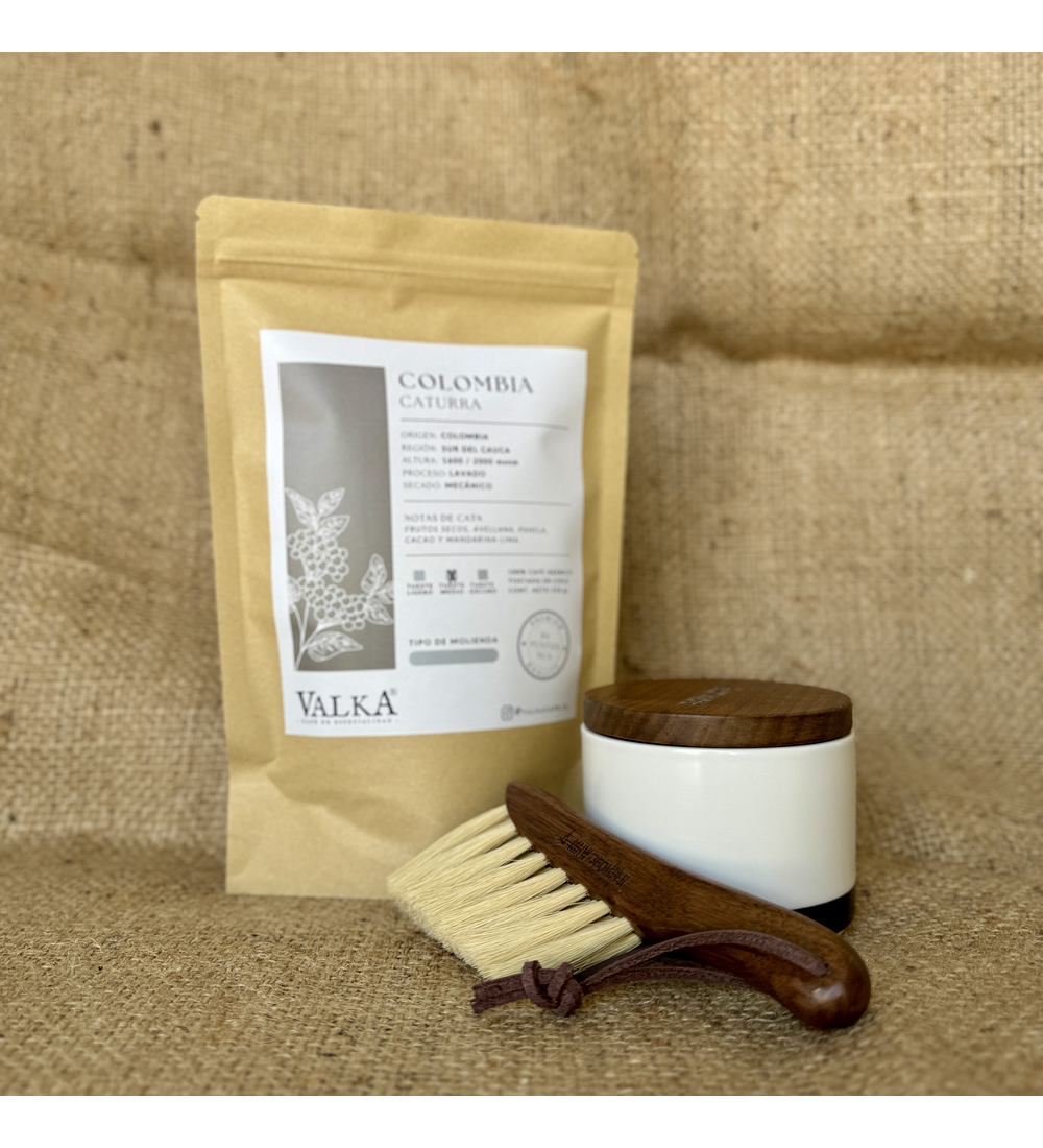 Café Colombia 250 gr. EN GRANO + Contenedor cerámico 150 ml + CEPILLO DE REGALO