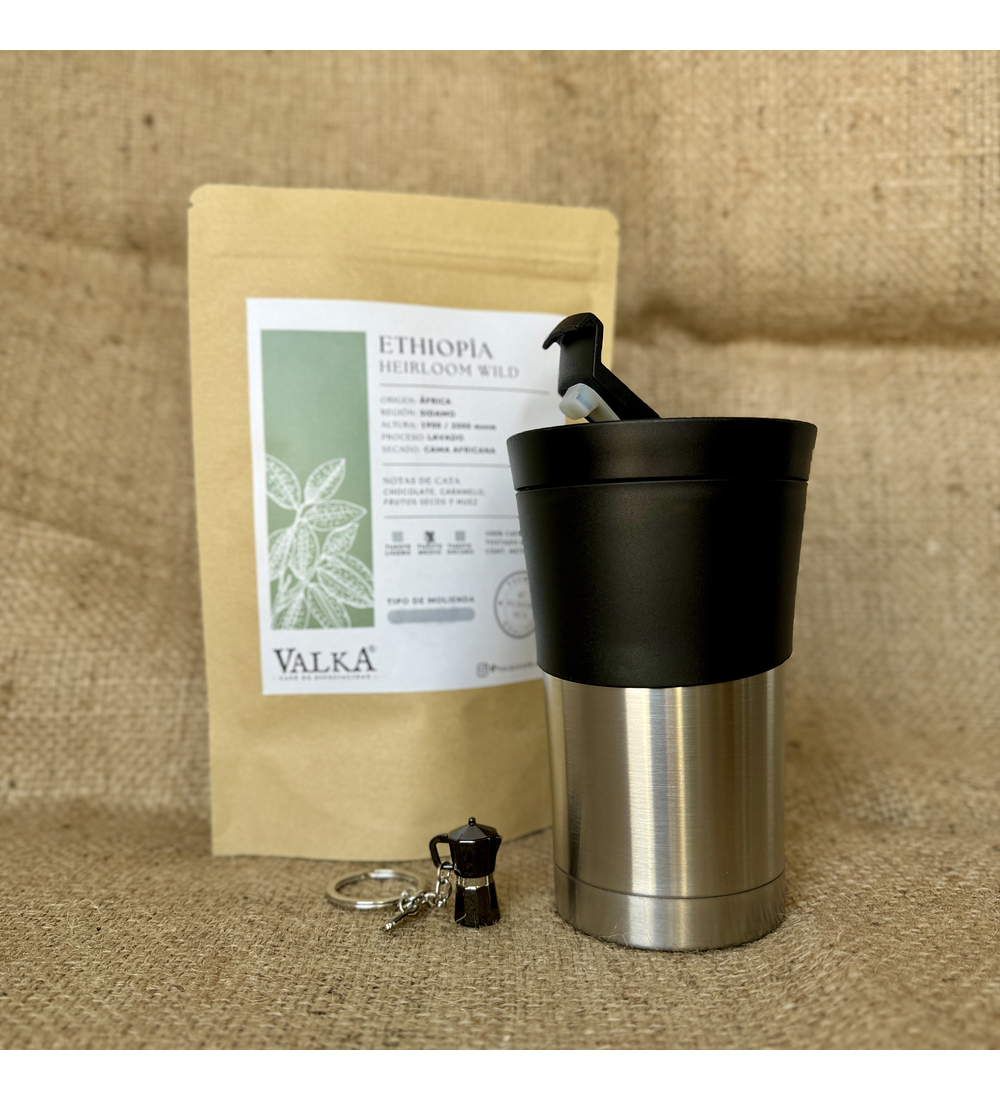 Café Ethiopía 250 gr. EN GRANO + 1 Vaso Térmico bicolor 330ml. (Blanco o Negro) + LLAVERO DE REGALO