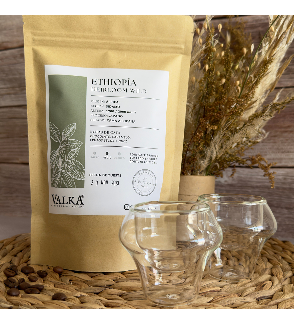 Combo #4 - Café Ethiopía + 2 Tazas Doble Vidrio